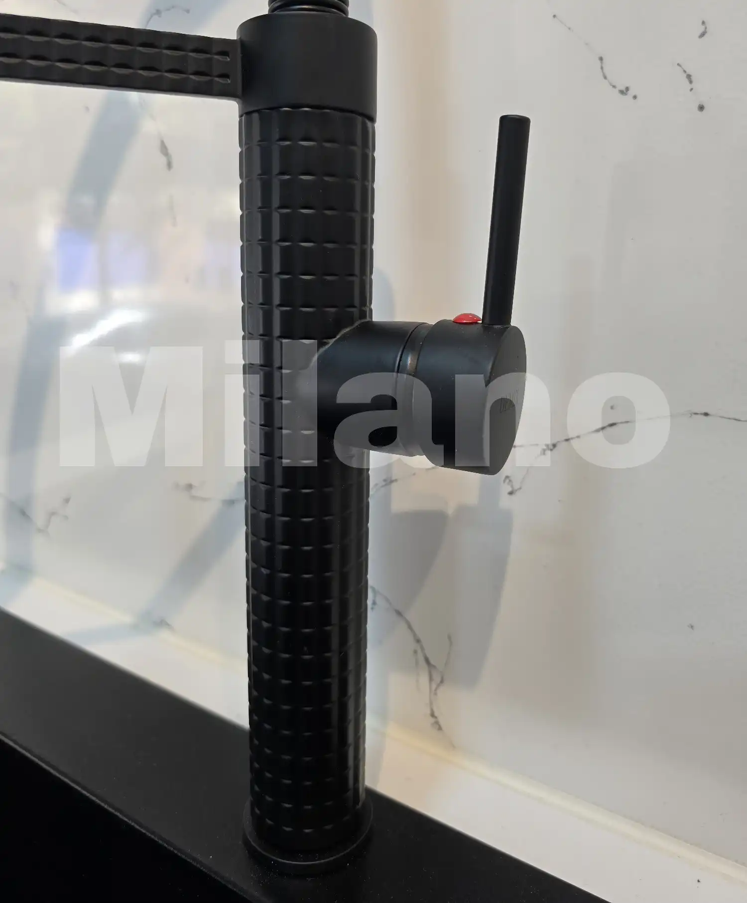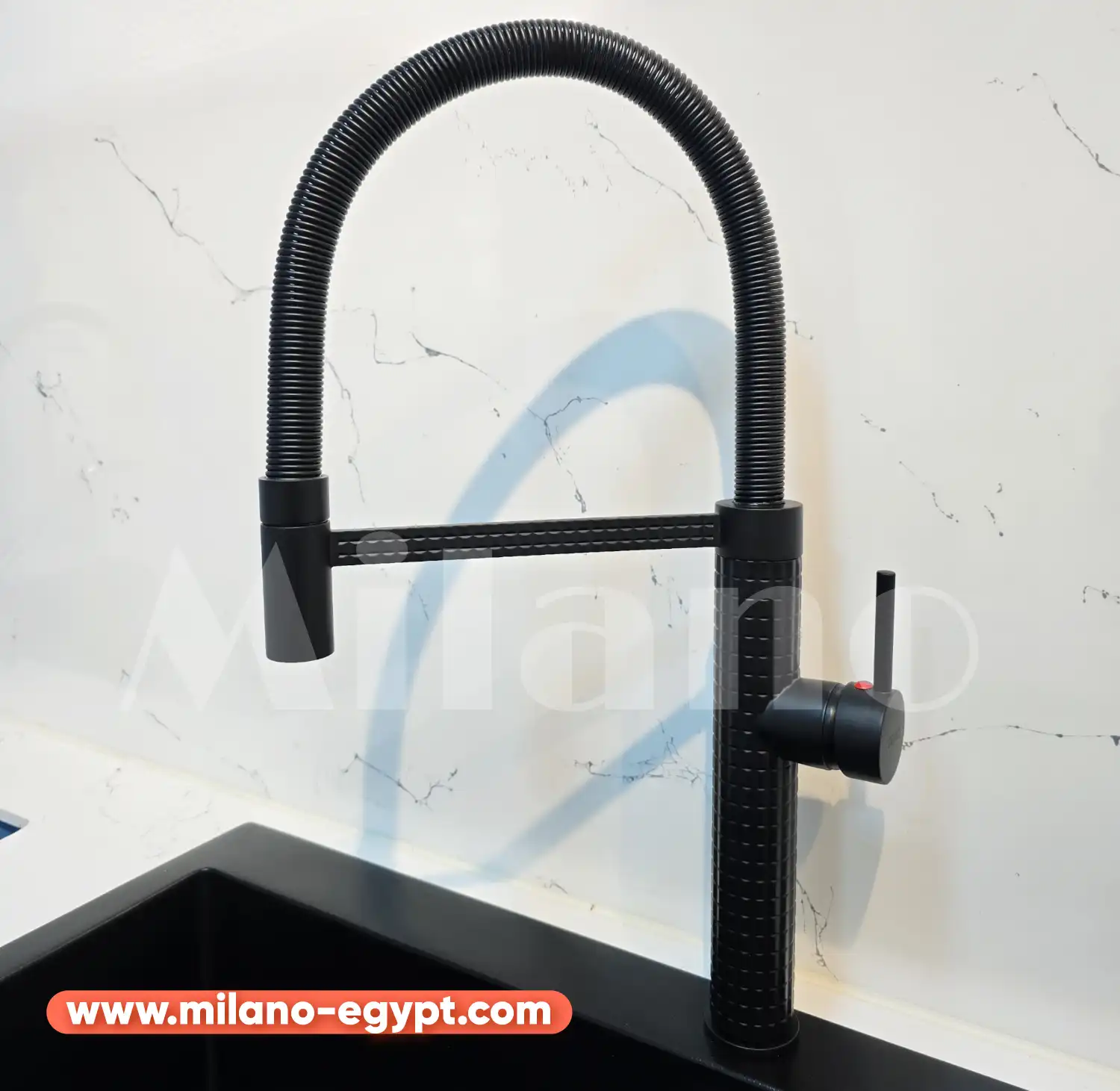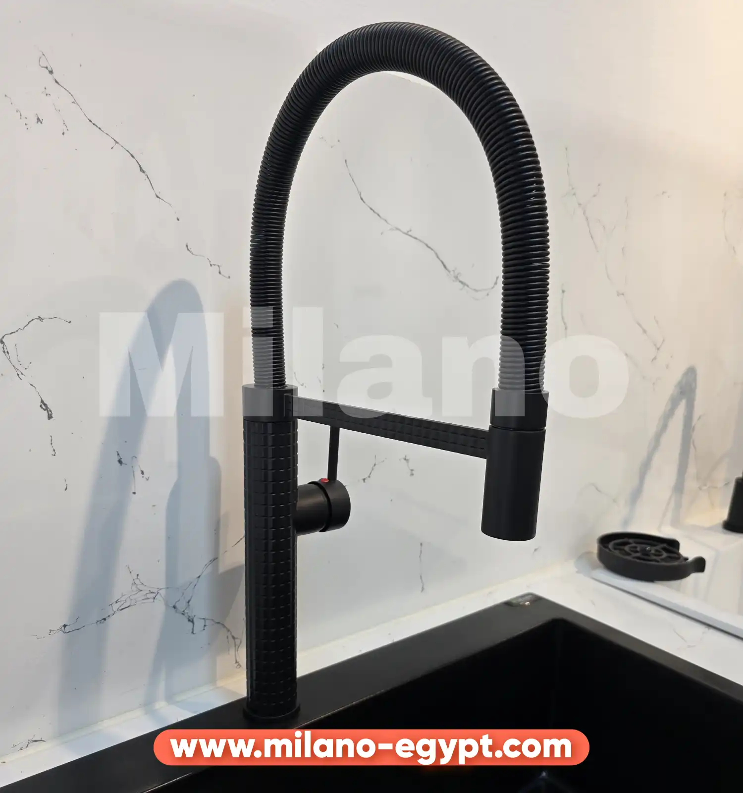 مصنوع من النحاس الخالص من الداخل لضمان أعلى درجات المتانة ومقاومة الصدأ، ومغلف من الخارج بطبقة مطفية أنيقة باللون الأسود تضيف لمسة فخامة وانسيابية على ديكور المطبخ.