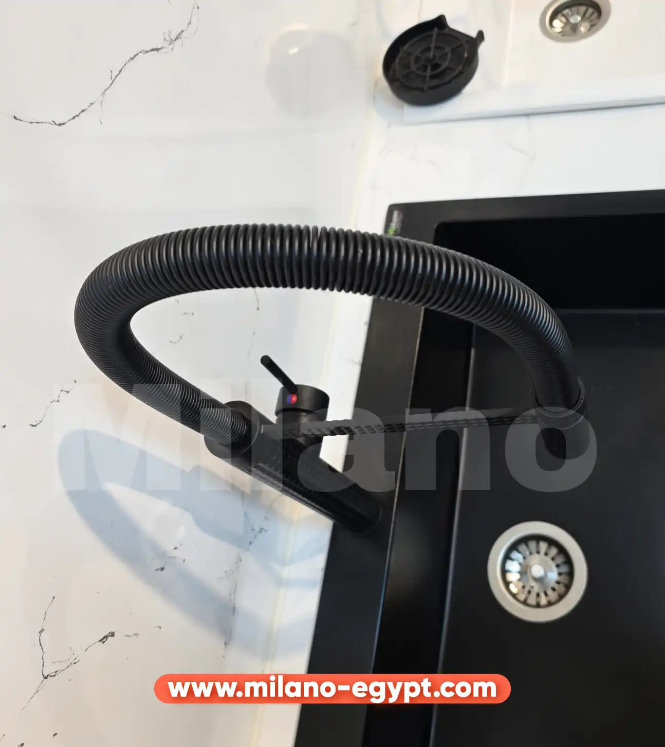 يتميز الخلاط بذراع مرن قابل للحركة في جميع الاتجاهات لتسهيل الوصول لكل أجزاء الحوض أثناء الغسيل، مما يجعله عمليًا وسهل الاستخدام في كل المهام اليومية.