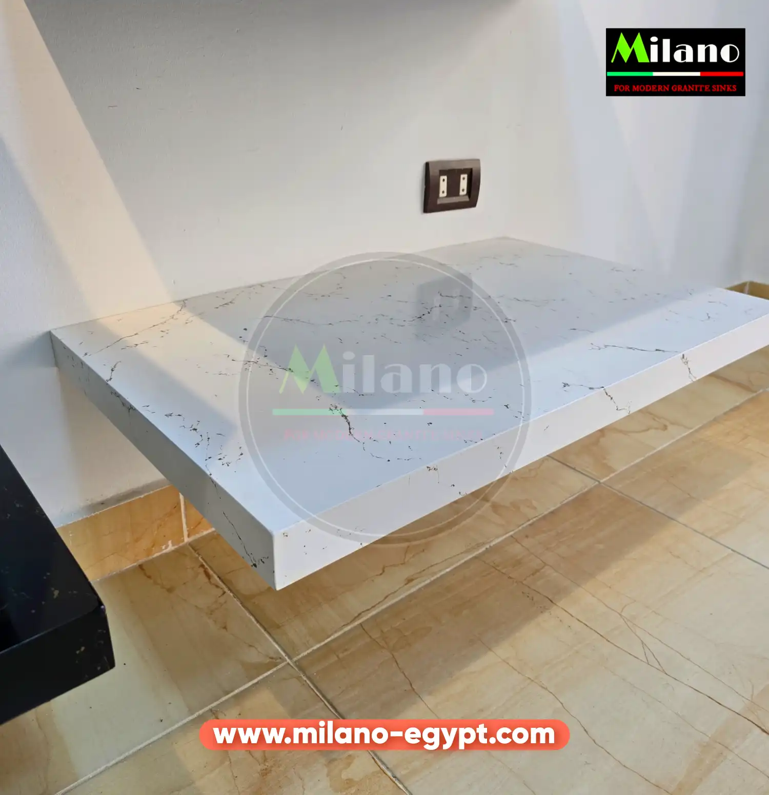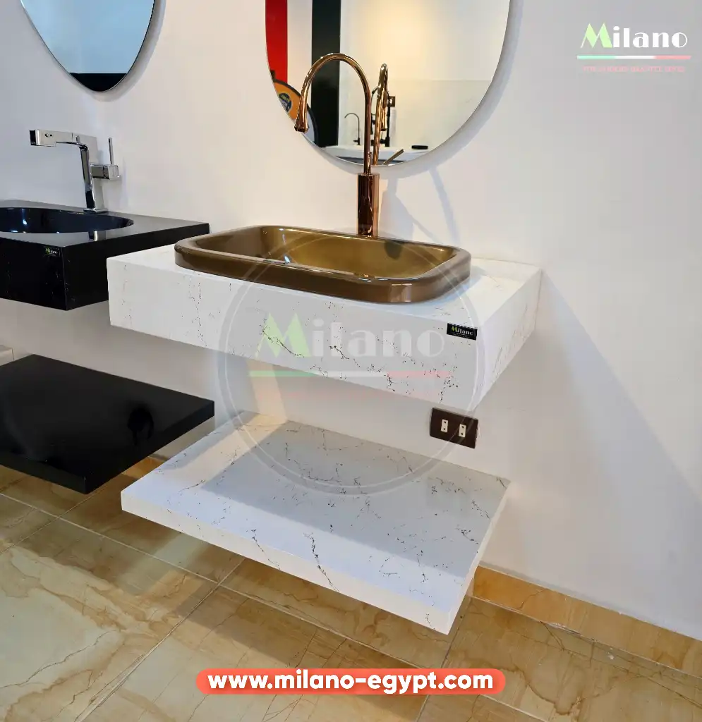 الحوض نصف ساقط داخل الرخامة لتقديم شكل مودرن عملي، مع سهولة التنظيف وراحة أكبر في الاستخدام.