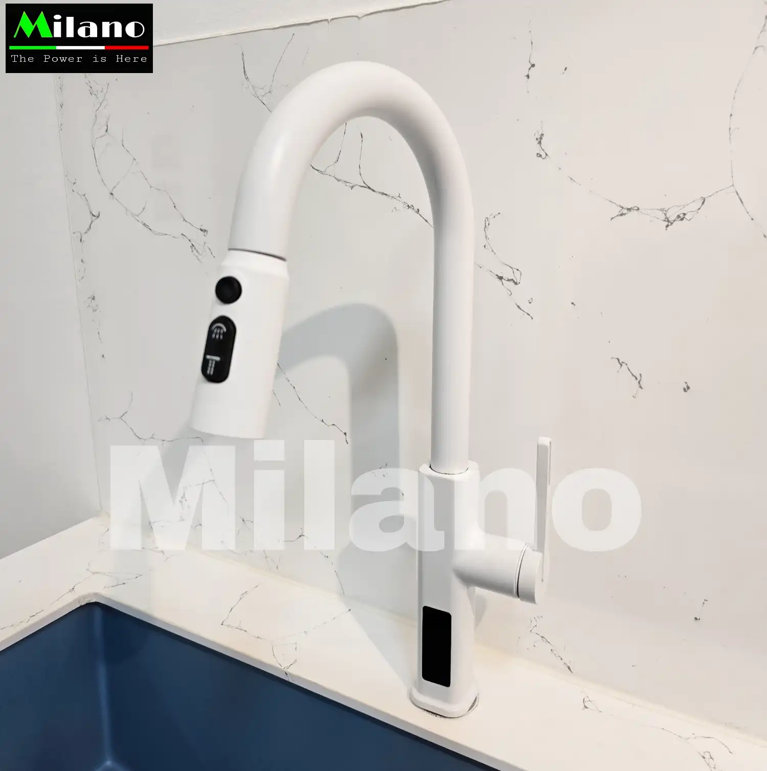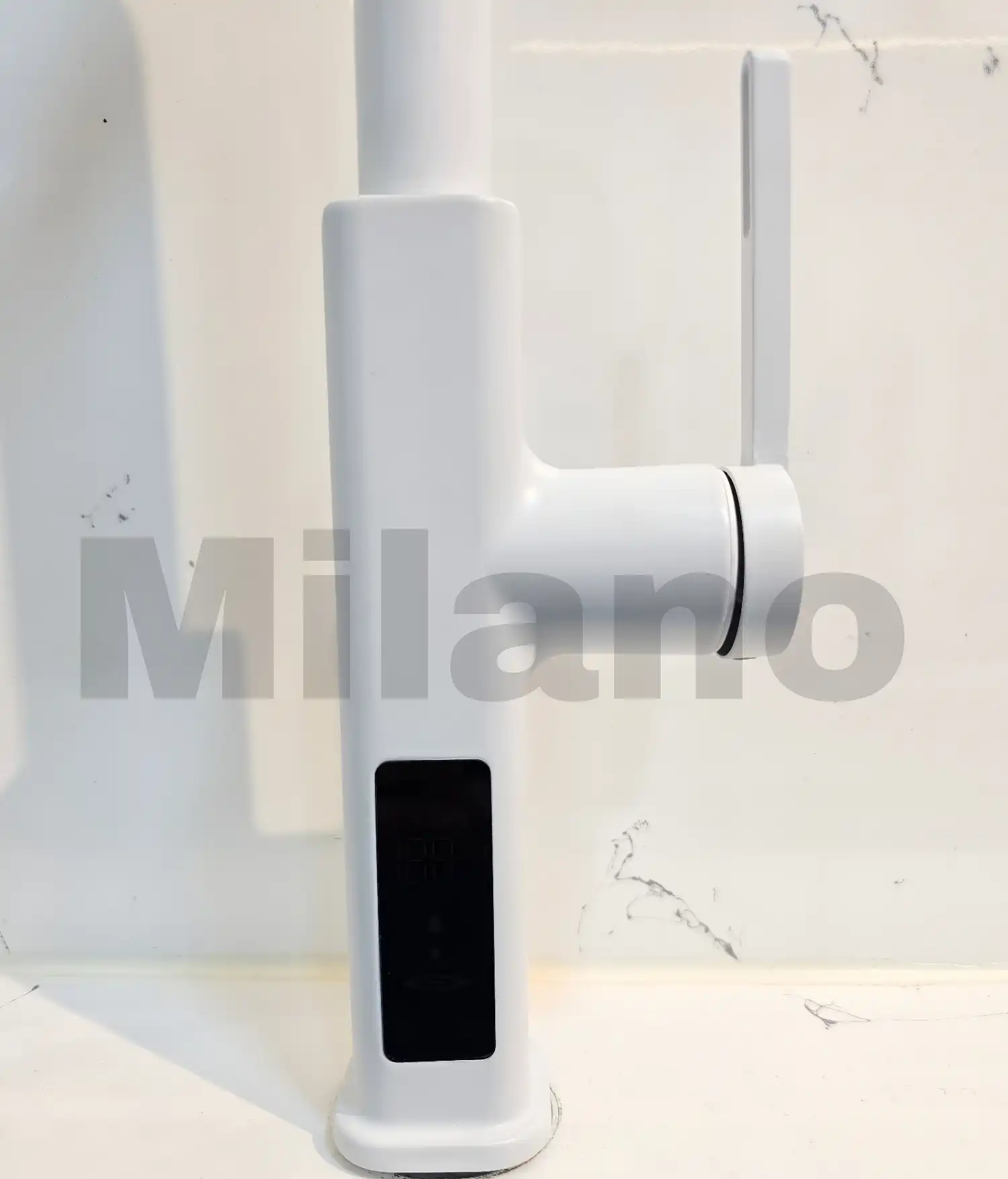 اكتشف خلاط مطبخ سحاب ديجيتال باللون الأبيض مع شاشة لعرض درجة حرارة المياه وتصميم عصري أنيق. خامات قوية، وضعيتان لتدفق المياه، وأداء فائق لجمال وراحة مطبخك.