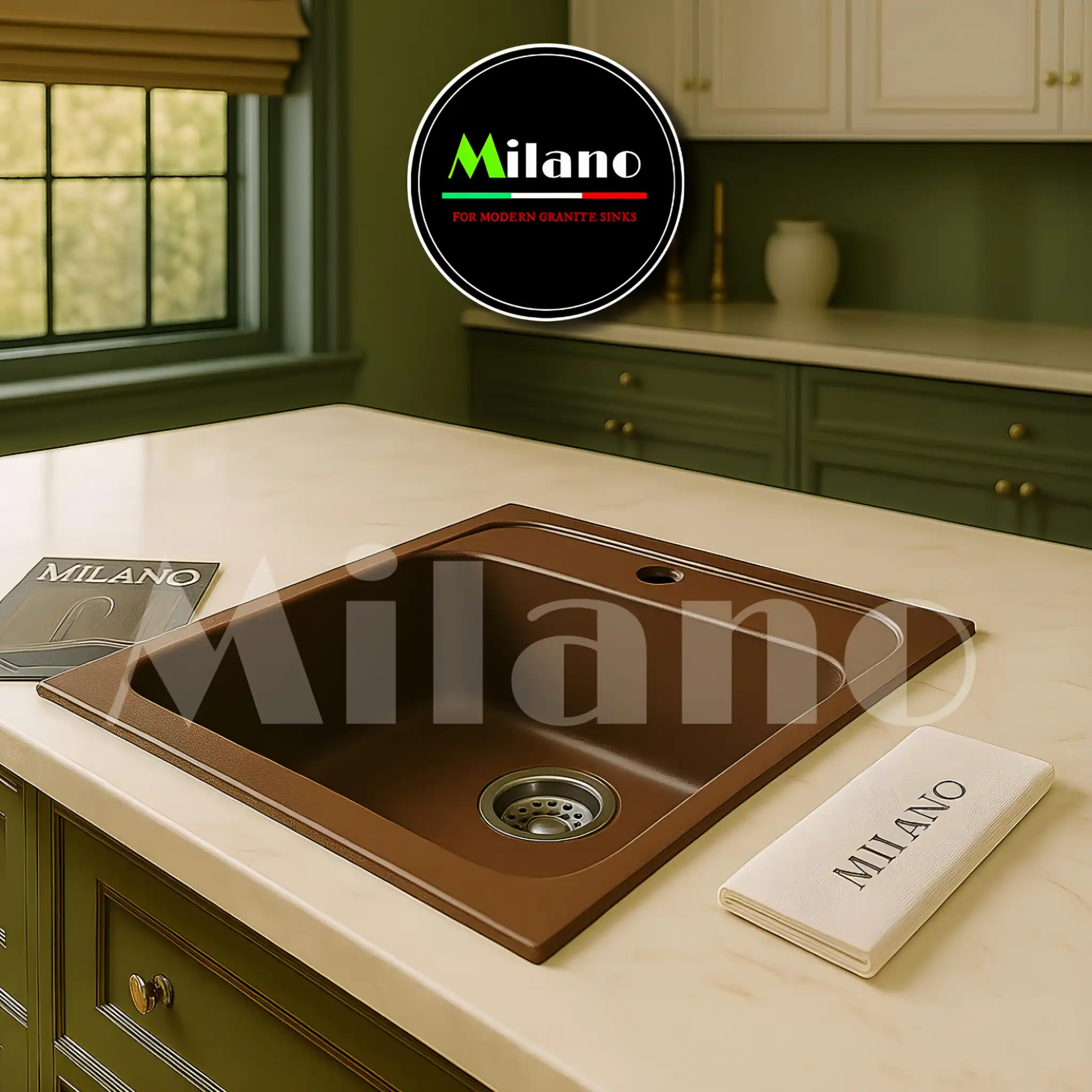 أطلب حوض مطبخ جرانيت 40×50 لون بني – ديزاين أيطالي من ميلانو إيجيبت، تصميم أنيق بلمسة أيطالية، مقاوم للخدوش والحرارة. الوان مط. مع ضمان عشرة سنوات