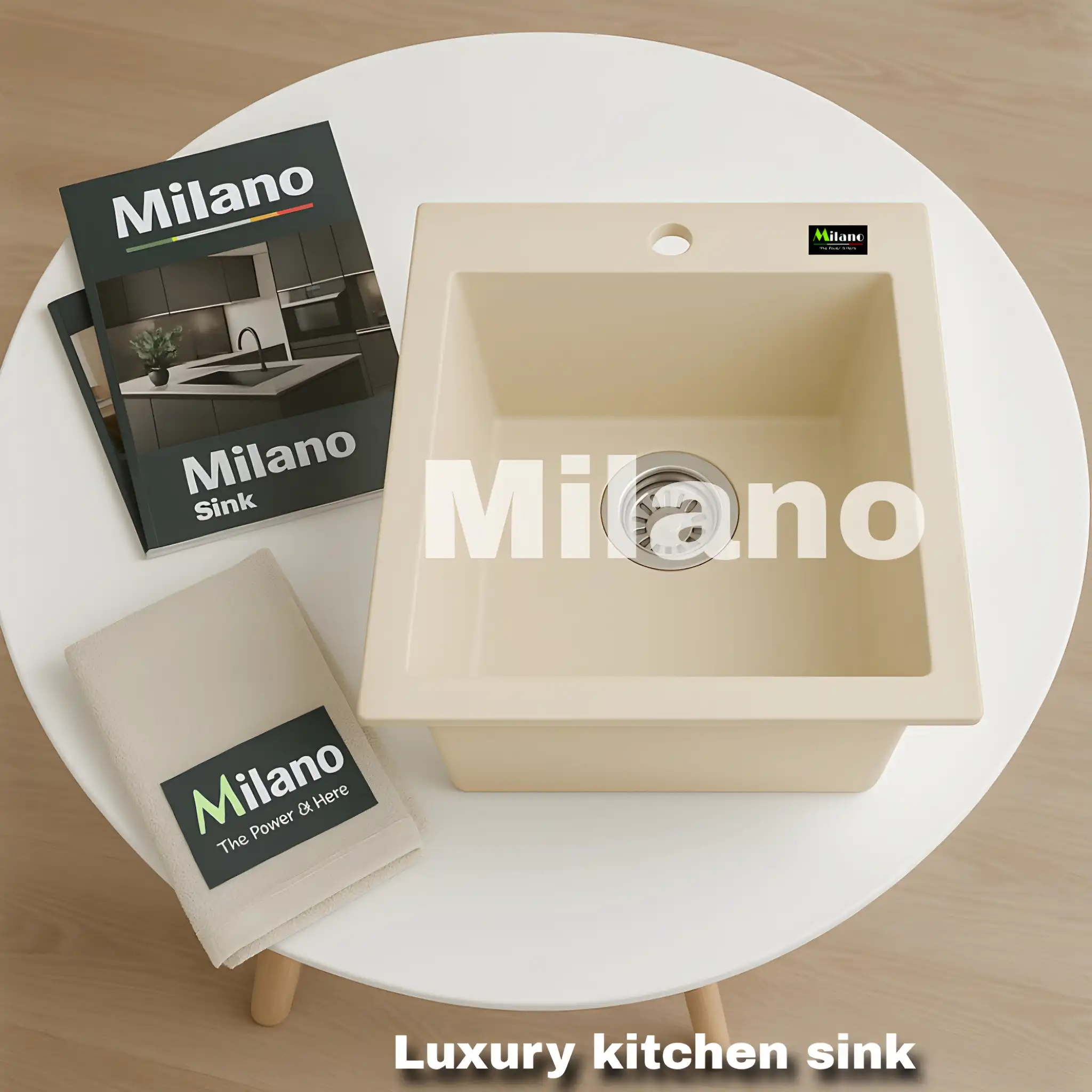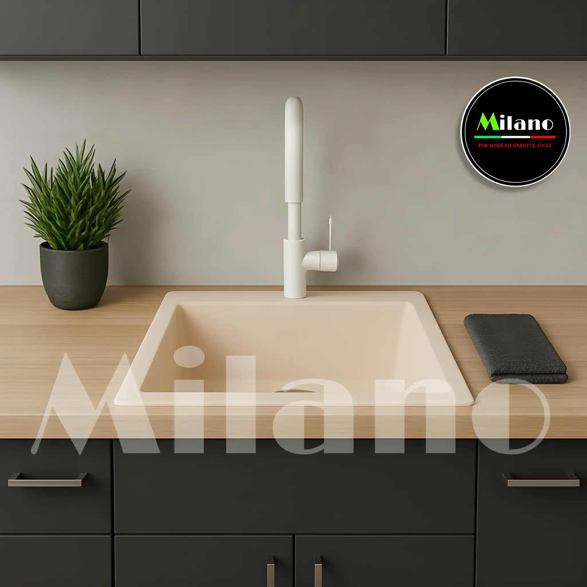 أطلب حوض مطبخ جرانيت 40×50 بيج – لمطبخ صغير. ديزاين أيطالي من ميلانو إيجيبت، تصميم أنيق بلمسة أيطالية، مقاوم للخدوش والحرارة. الوان مط. مع ضمان عشرة سنوات.