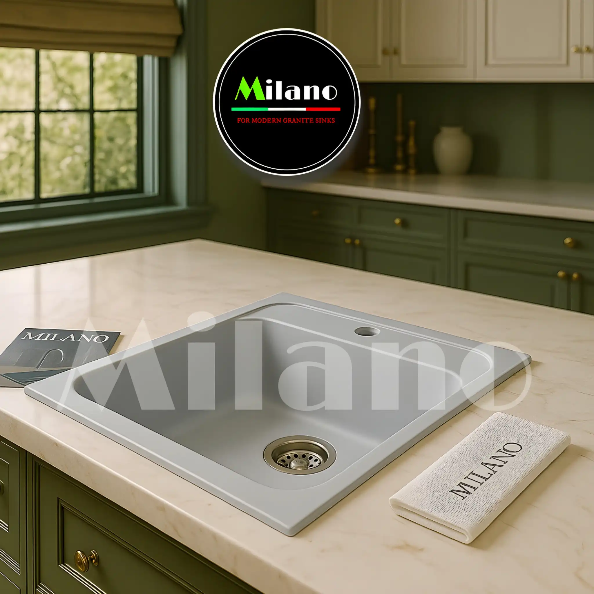 أطلب حوض مطبخ جرانيت 40×50 سيلفر – ديزاين أيطالي من ميلانو إيجيبت، تصميم أنيق بلمسة أيطالية، مقاوم للخدوش والحرارة. الوان مط. مع ضمان عشرة سنوات