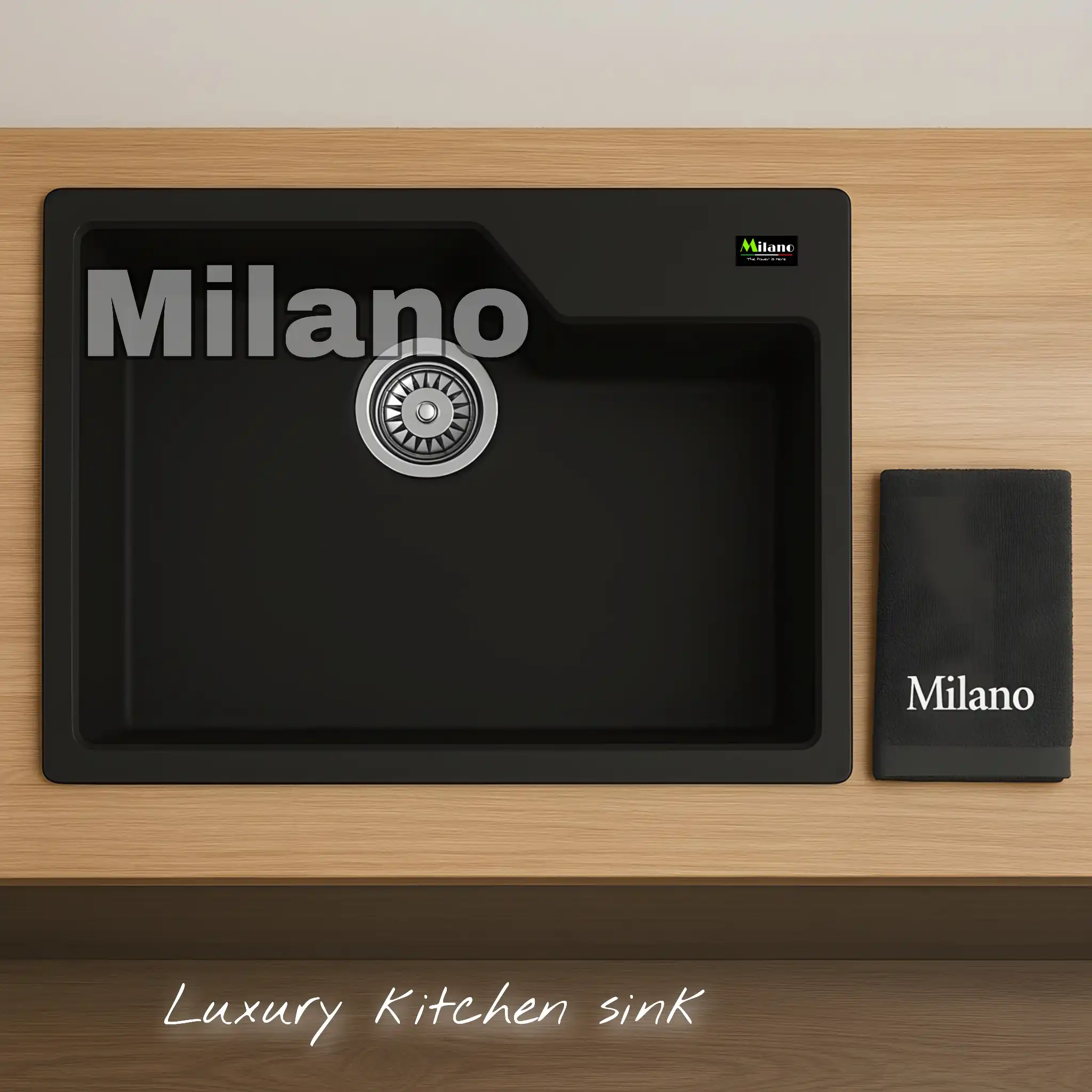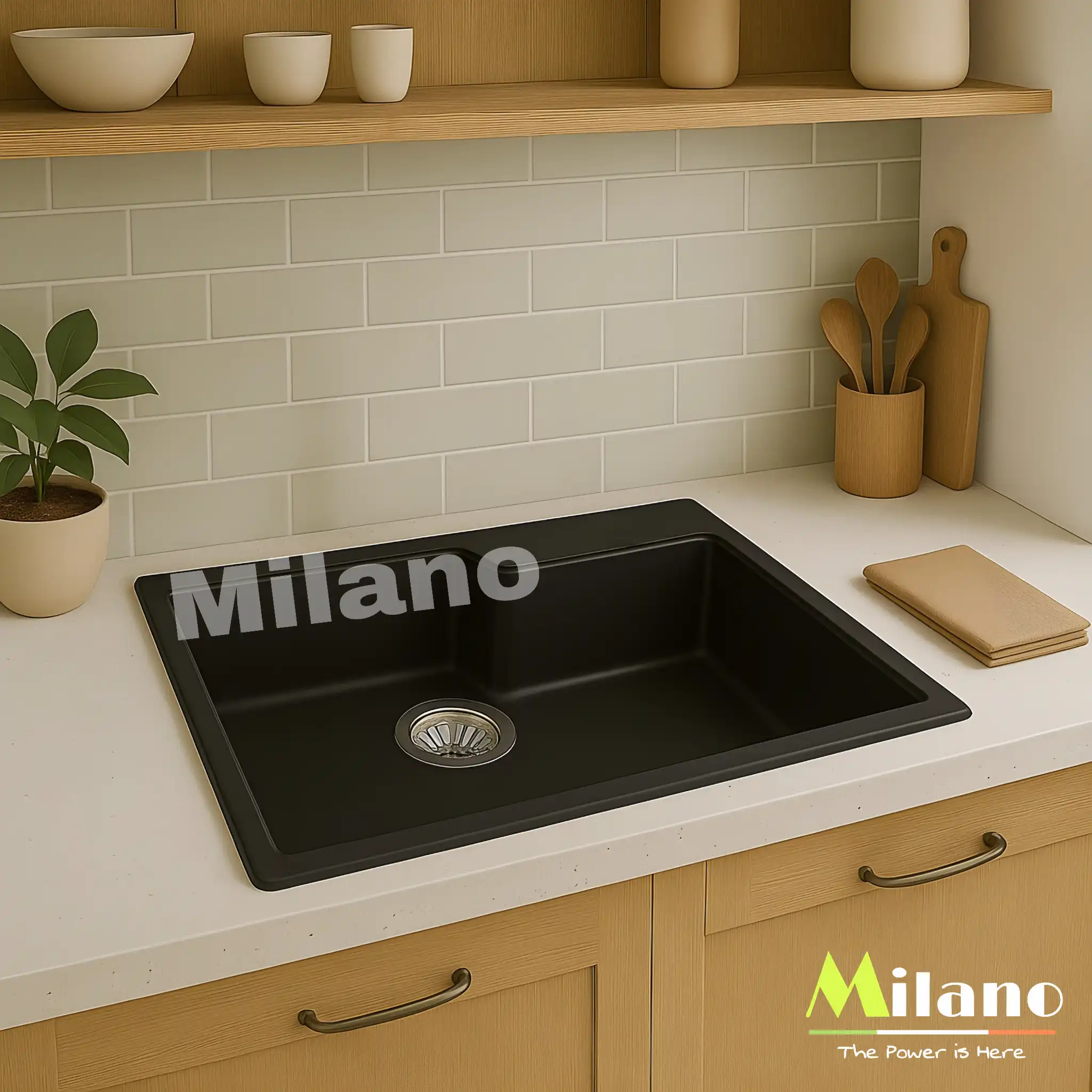 مميزات حوض المطبخ الجرانيت نسخة فرانكي مقاس 56×50 لون اسود مط بالصرف 10 ملي من ميلانو: