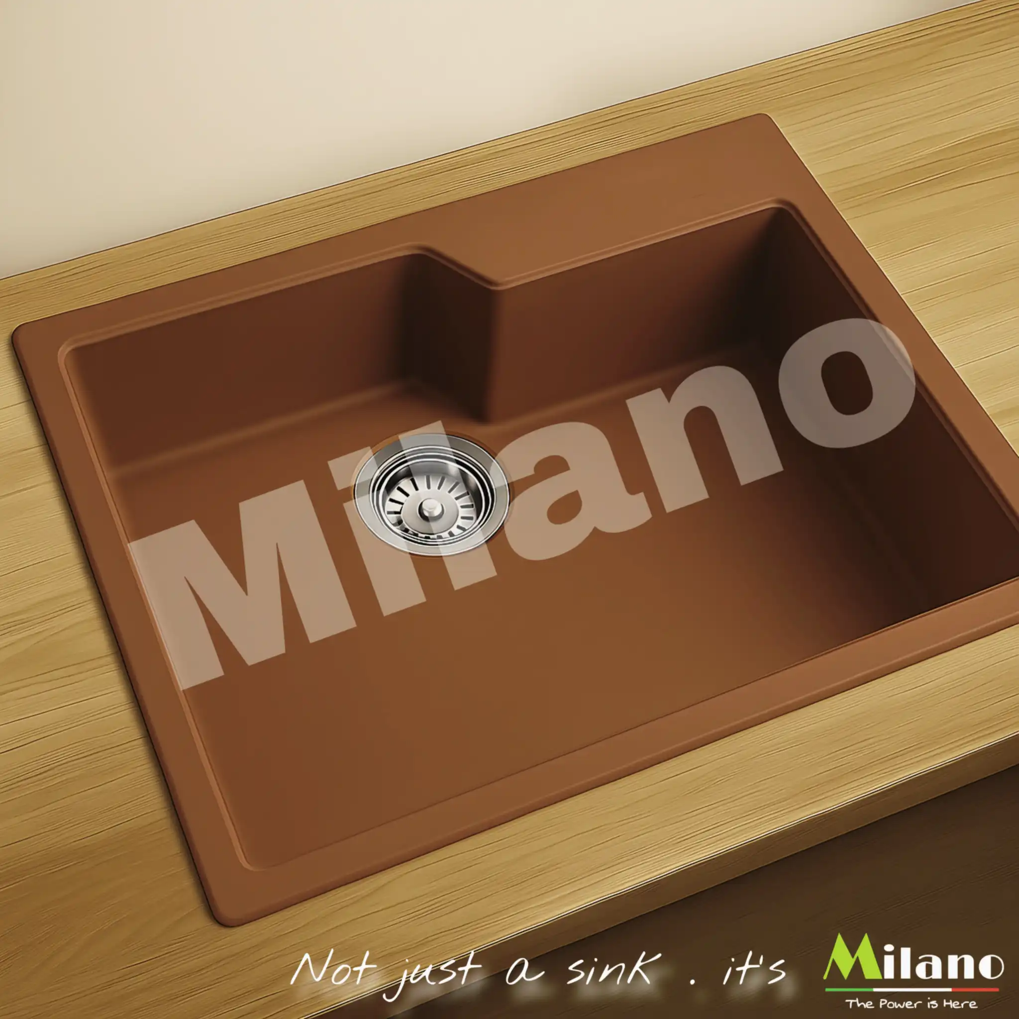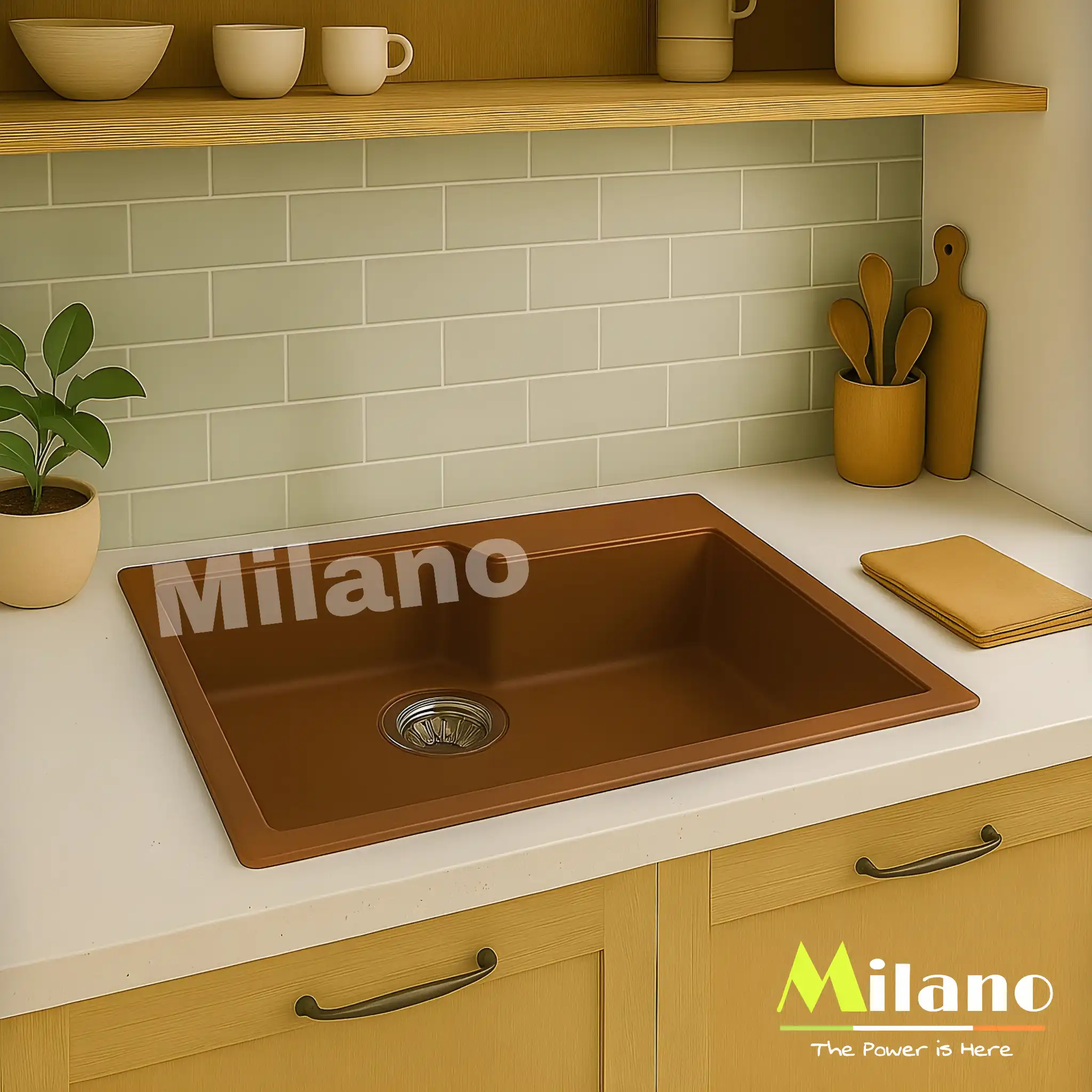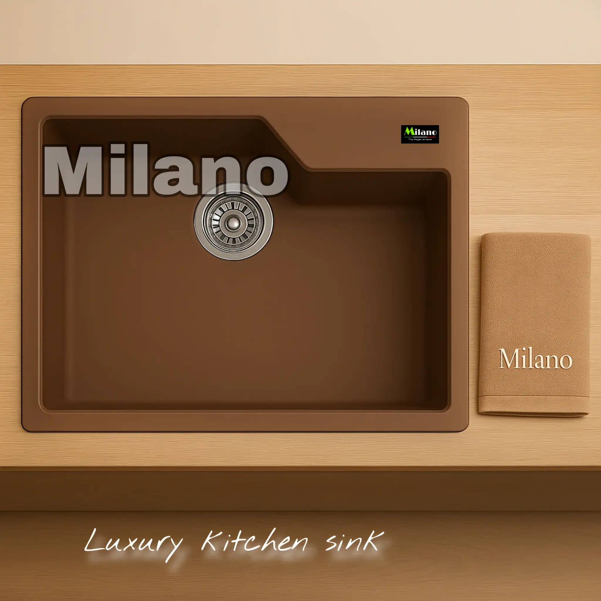 مميزات حوض المطبخ الجرانيت نسخة فرانكي مقاس 56×50 لون بني مط بالصرف 10 ملي من ميلانو: