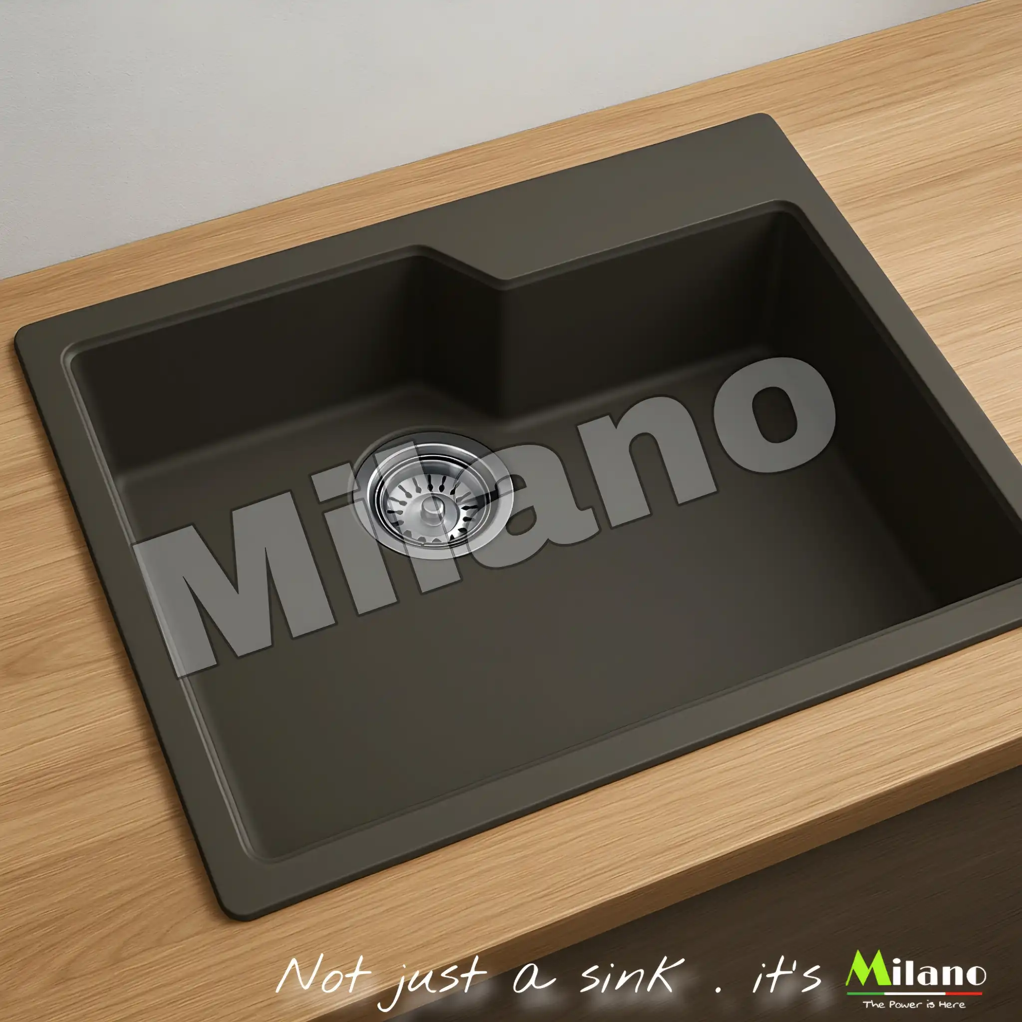 مميزات حوض المطبخ الجرانيت نسخة فرانكي مقاس 56×50 لون جراي غامق مط بالصرف 10 ملي من ميلانو:
