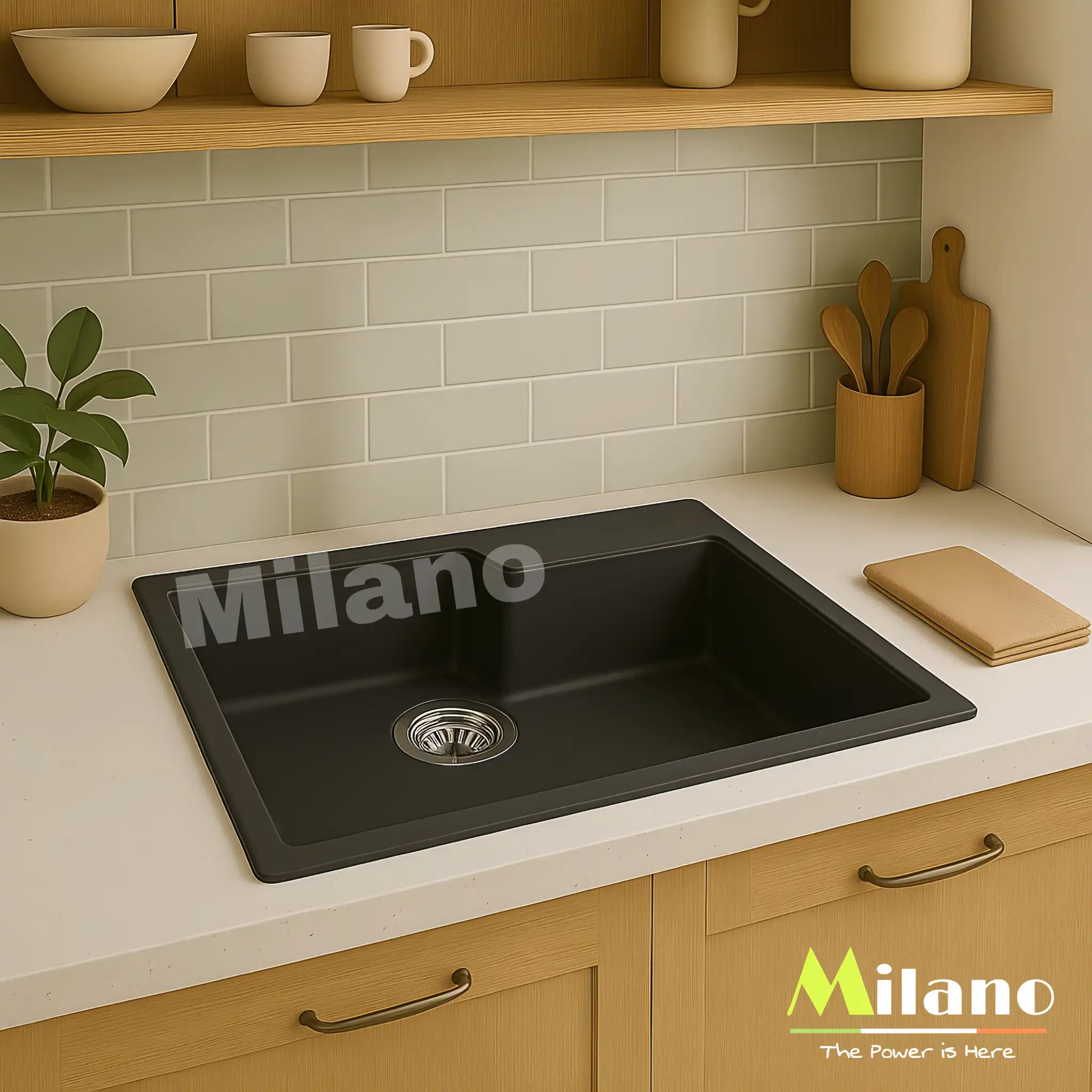 يوفر لك الحوض الجرانيت نسخة فرانكي من شركة ميلانو ايجيبت مزيج من الفاخمة والعملية مع لون مط مميز غير قابل للتغيير كما انه يمكن تركيب الحوض ساقط داخل الرخامة او اعلي الرخامة.