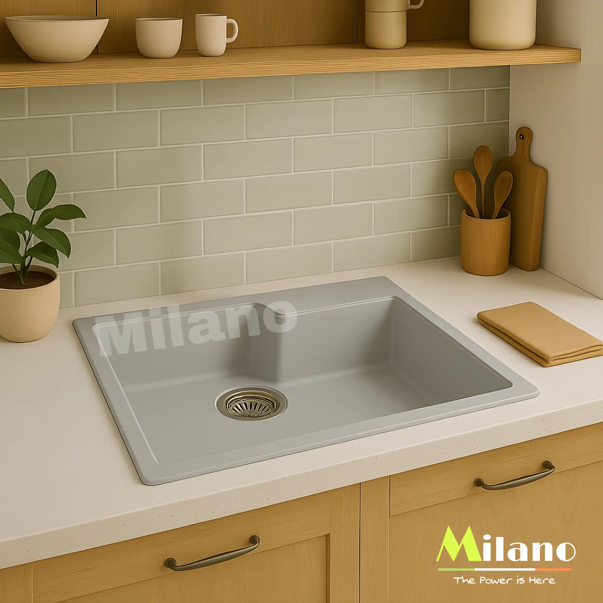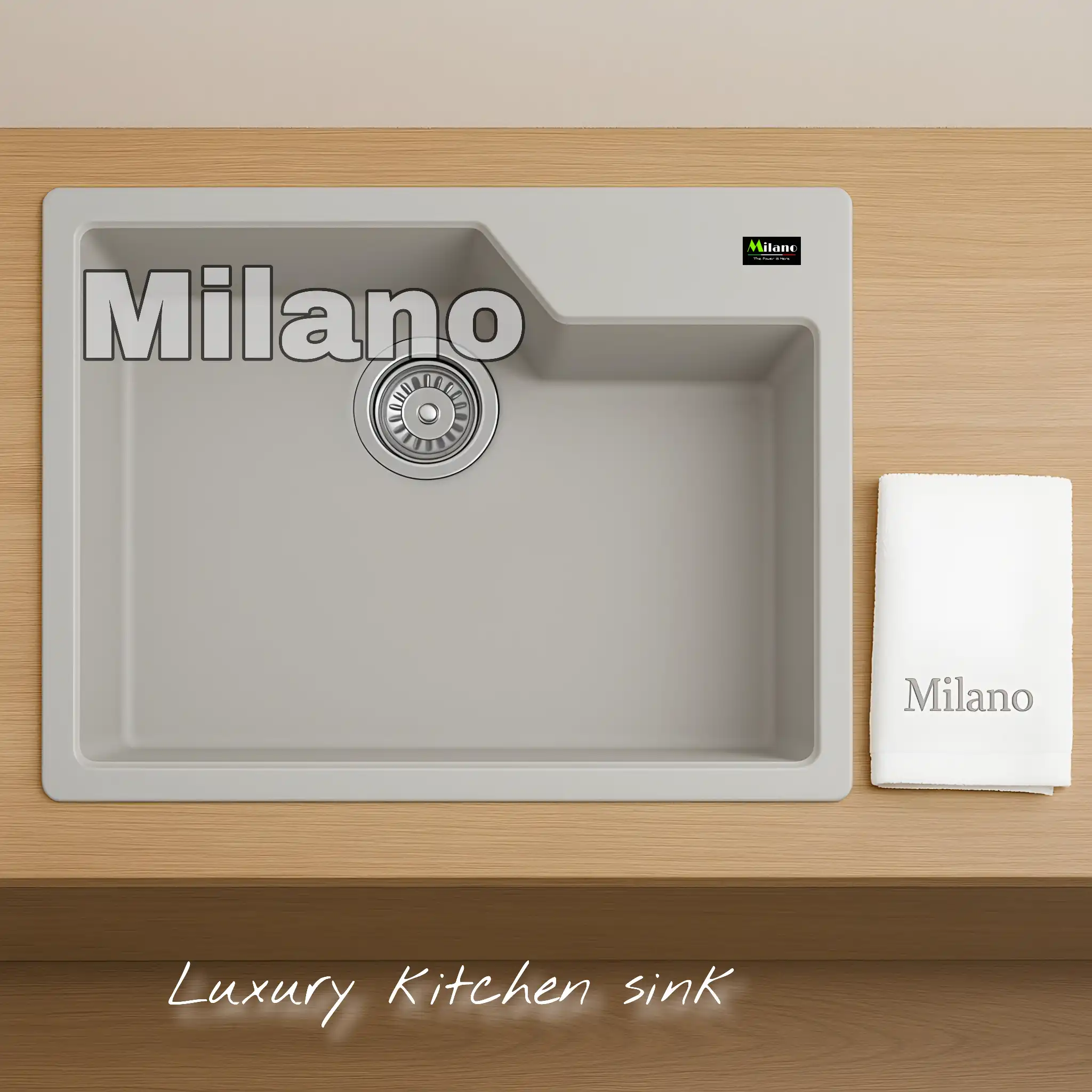 مميزات حوض المطبخ الجرانيت نسخة فرانكي مقاس 56×50 لون سيلفر مط بالصرف 10 ملي من ميلانو: