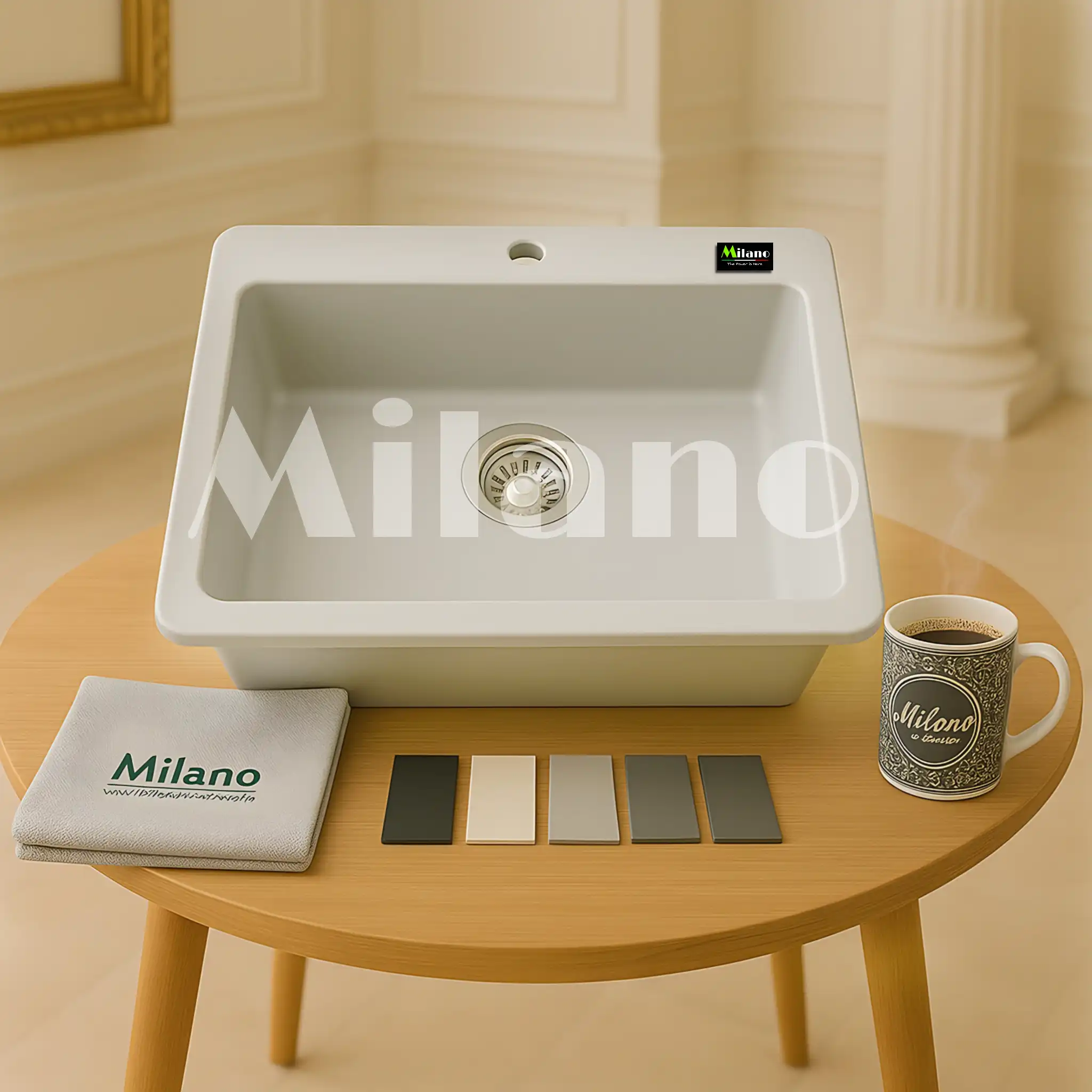 حوض جرانيت 60×50 سيلفر من ميلانو إيجيبت – لمسة فخامة وأناقة لمطبخك، مقاوم للحرارة وسهل العناية.