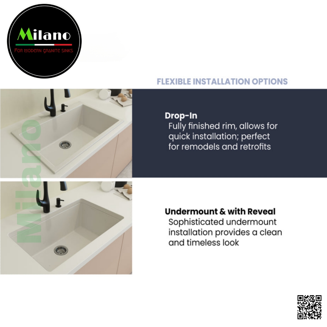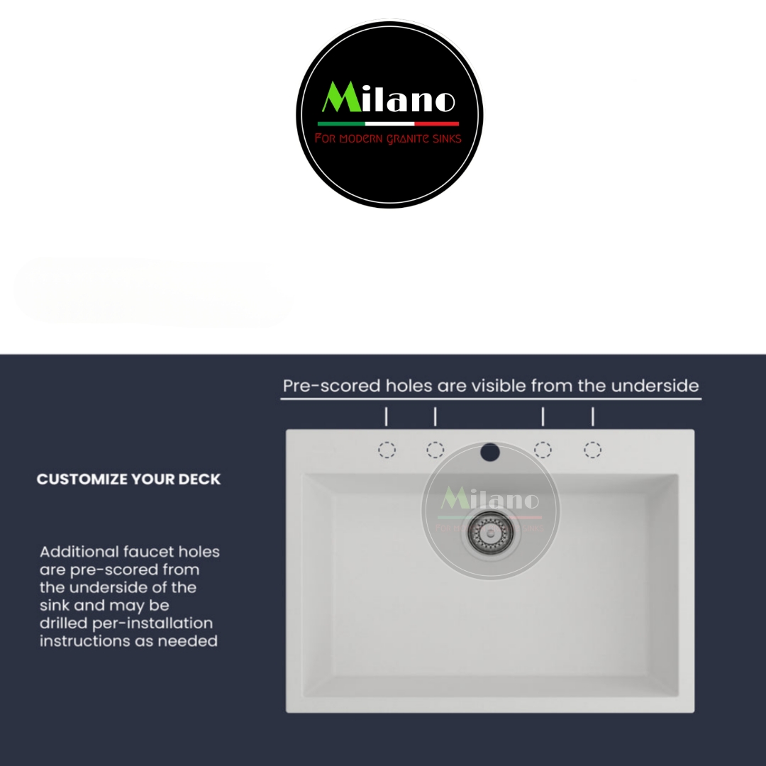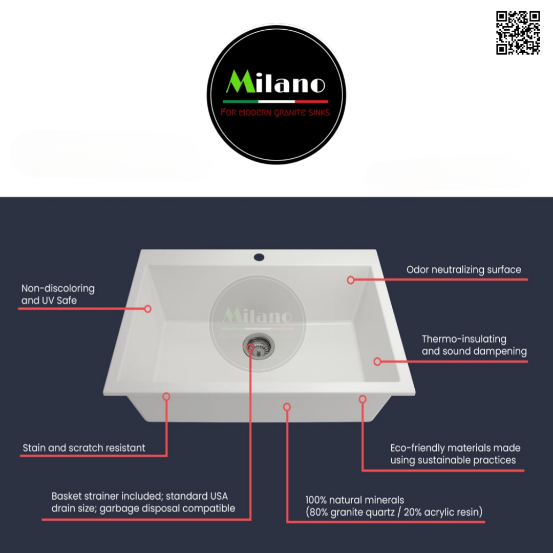 أشتري حوض مطبخ جرانيت 70×50 أبيض من ميلانو إيجيبت – تصميم أنيق، مقاوم للحرارة وسهل التنظيف، مثالي للمطابخ الحديثة. غير قابل للخدش والتجريح مع ضمان عشرة سنوات