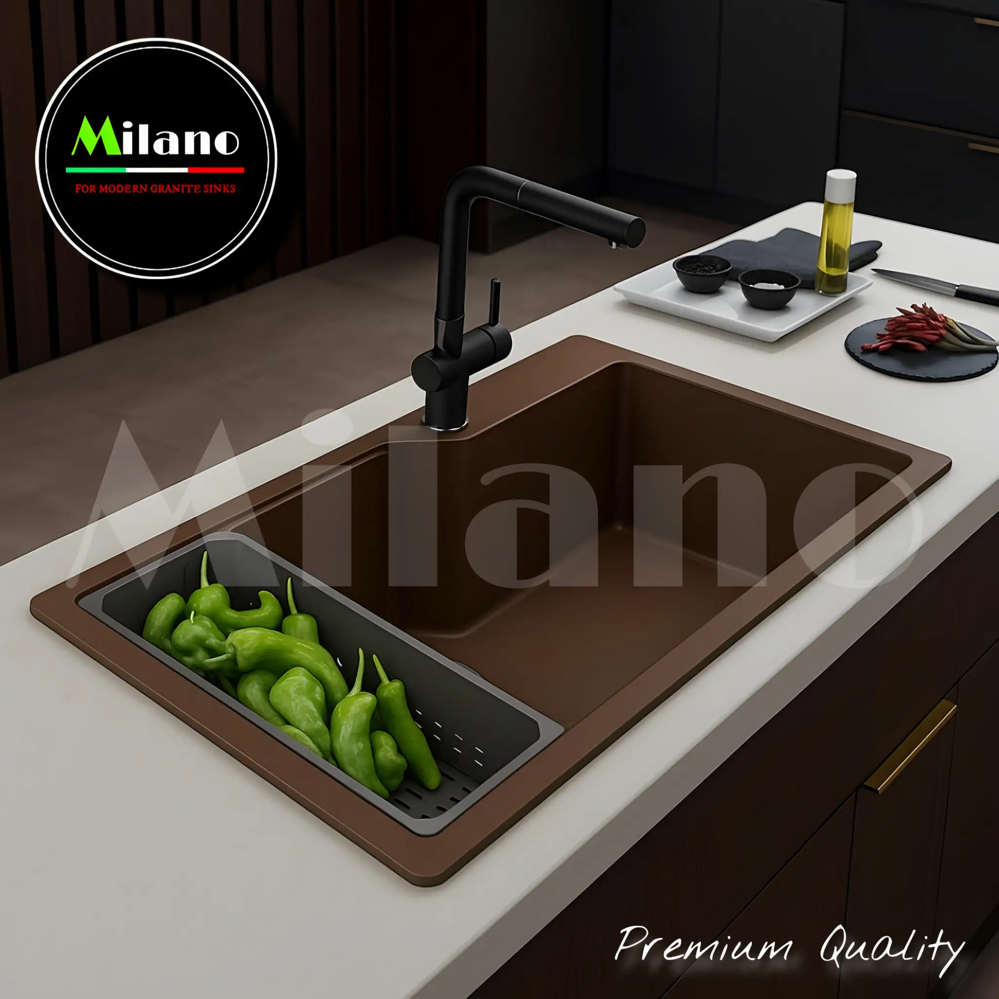 مميزات حوض المطبخ الجرانيت نسخة فرانكي مقاس 78×50 لون بني مط بالصرف 5 ملي من ميلانو: