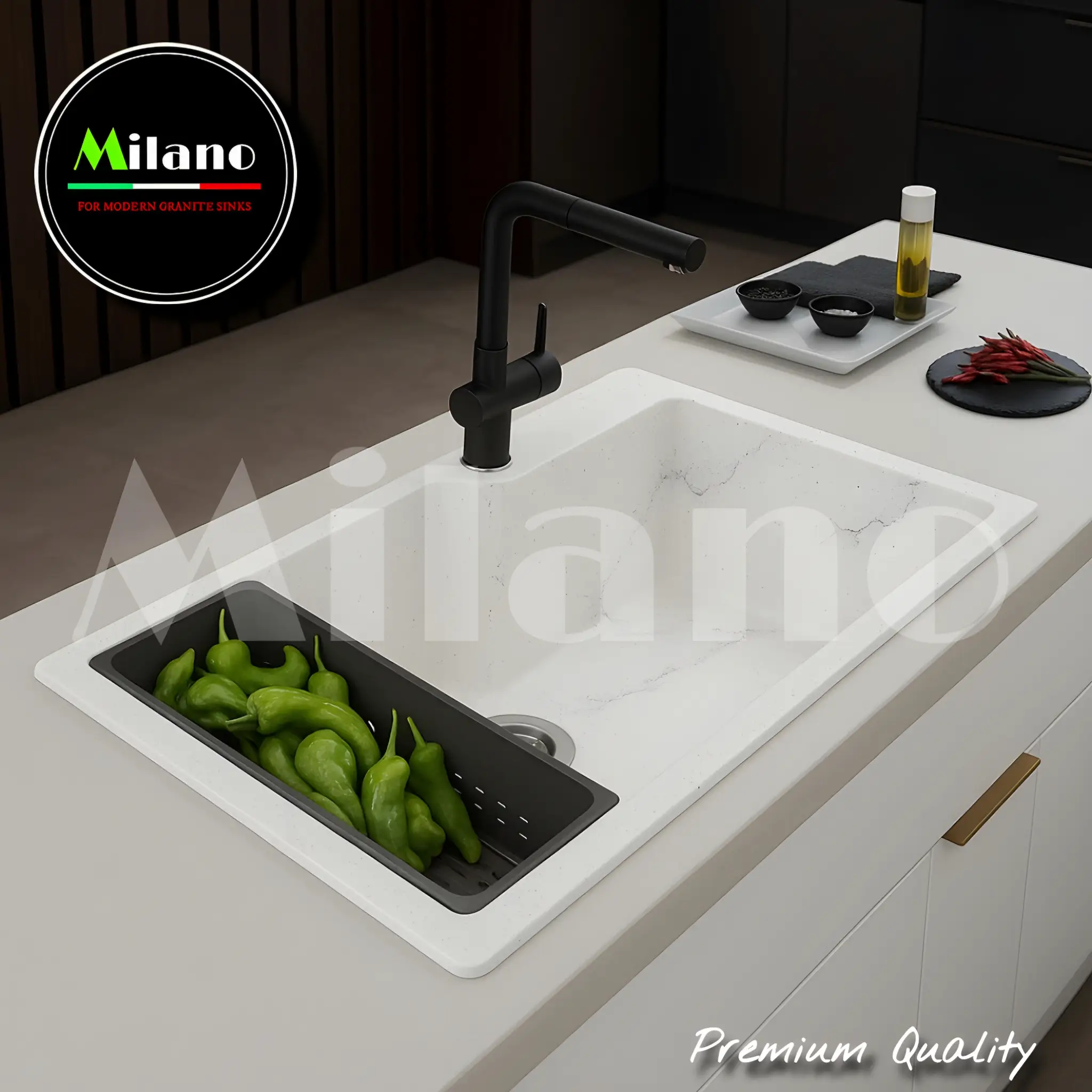 يوفر لك الحوض الجرانيت نسخة فرانكي من شركة ميلانو ايجيبت مزيج من الفاخمة والعملية مع لون مط مميز غير قابل للتغيير كما انه يمكن تركيب الحوض ساقط داخل الرخامة او اعلي الرخامة