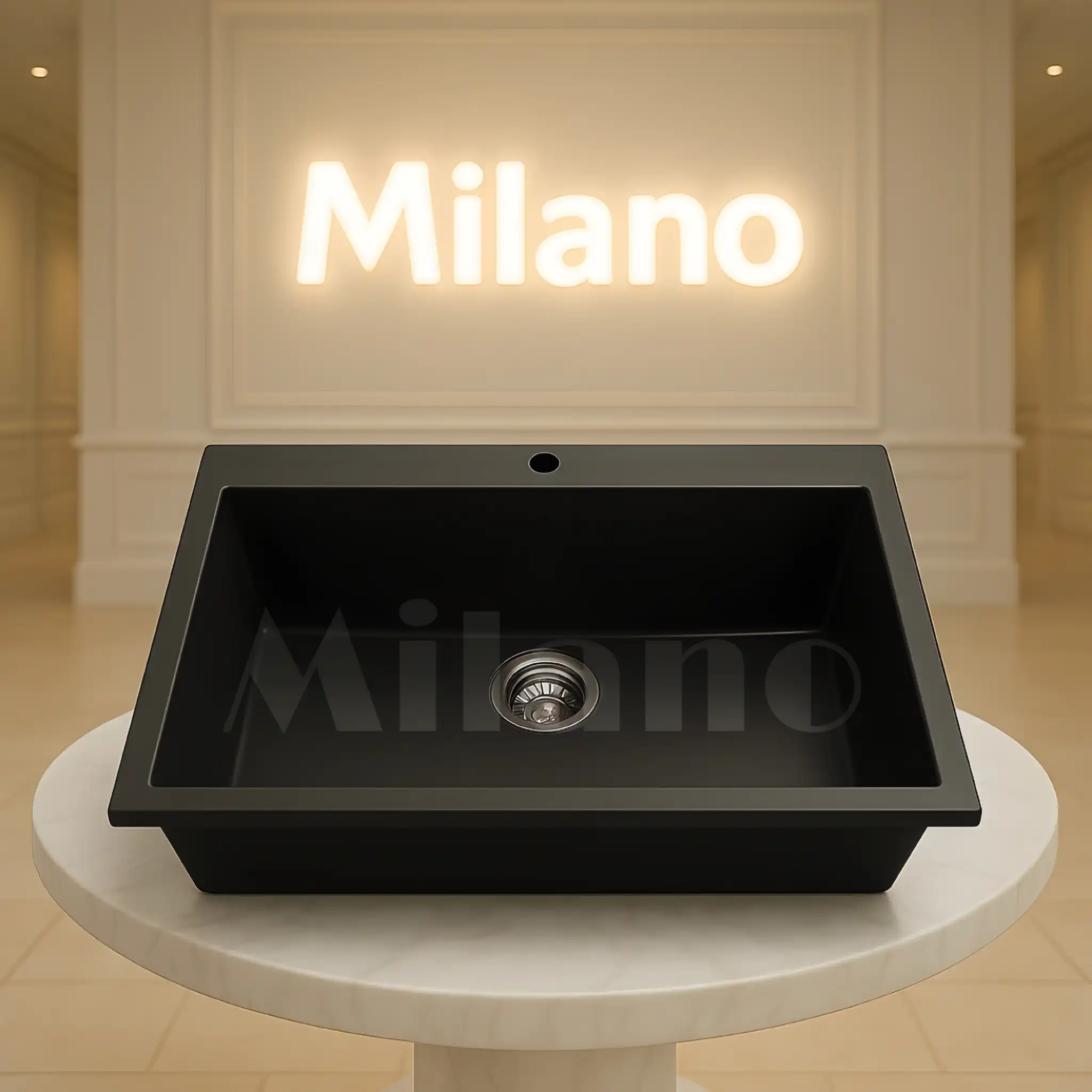 أشتري حوض مطبخ جرانيت 80×50 باللون الأسود من ميلانو إيجيبت – تصميم أنيق، مقاوم للحرارة وسهل التنظيف، مثالي للمطابخ الحديثة. غير قابل للخدش والتجريح