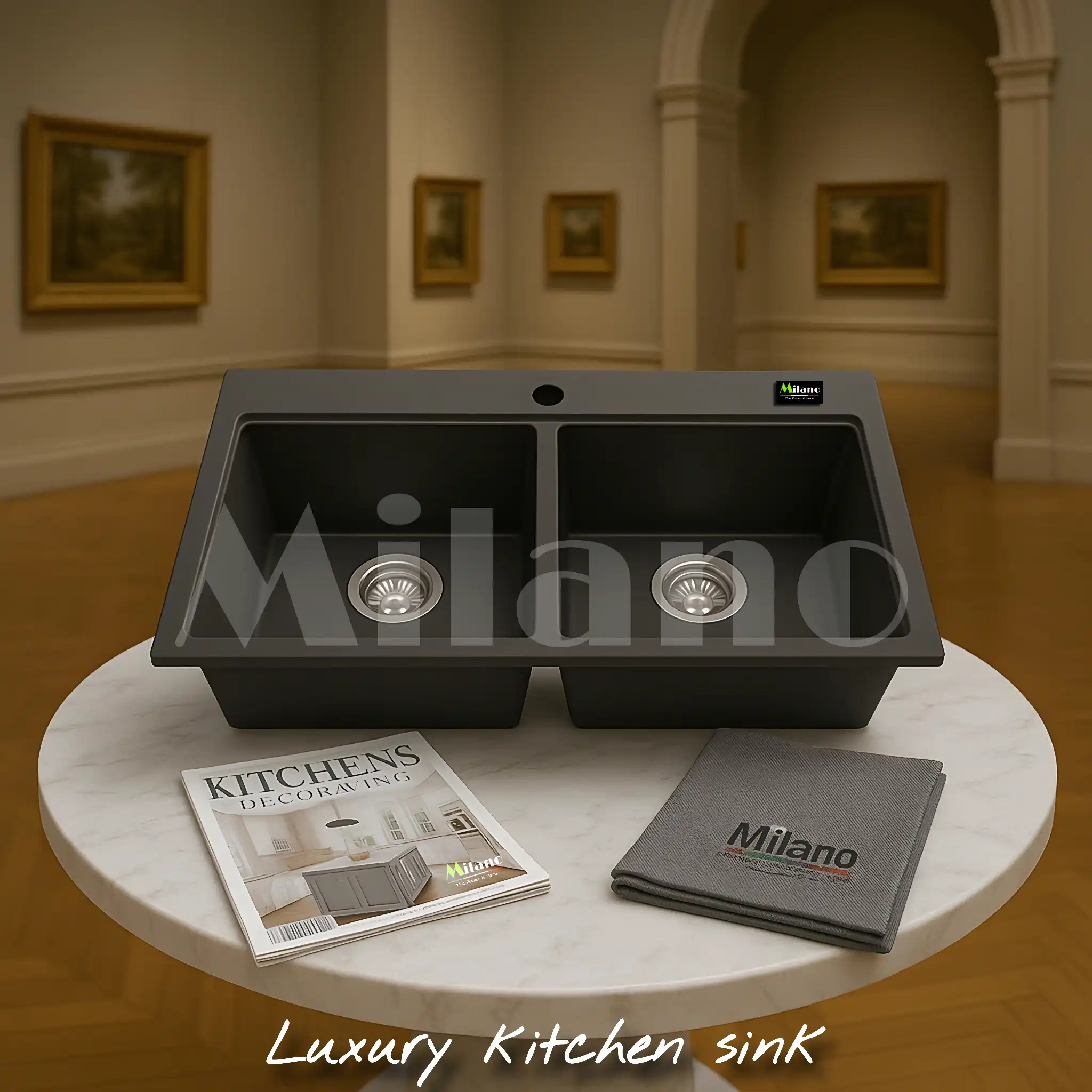 أشتري حوض مطبخ جرانيت 80×50 اتنين عين جراي من ميلانو إيجيبت – تصميم أنيق، مقاوم للحرارة وسهل التنظيف، مثالي للمطابخ الحديثة. غير قابل للخدش والتجريح.