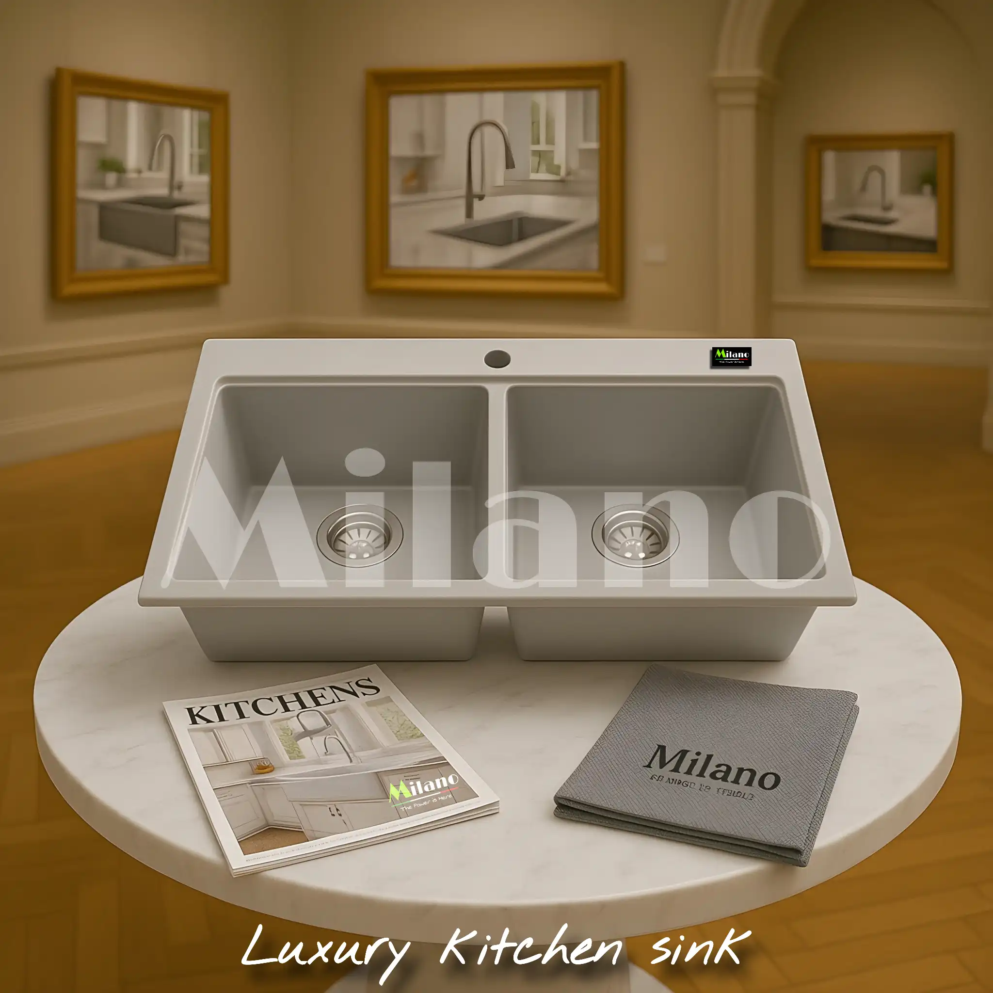 أشتري حوض مطبخ جرانيت 80×50 اتنين عين سيلفر من ميلانو إيجيبت – تصميم أنيق، مقاوم للحرارة وسهل التنظيف، مثالي للمطابخ الحديثة. غير قابل للخدش والتجريح.
