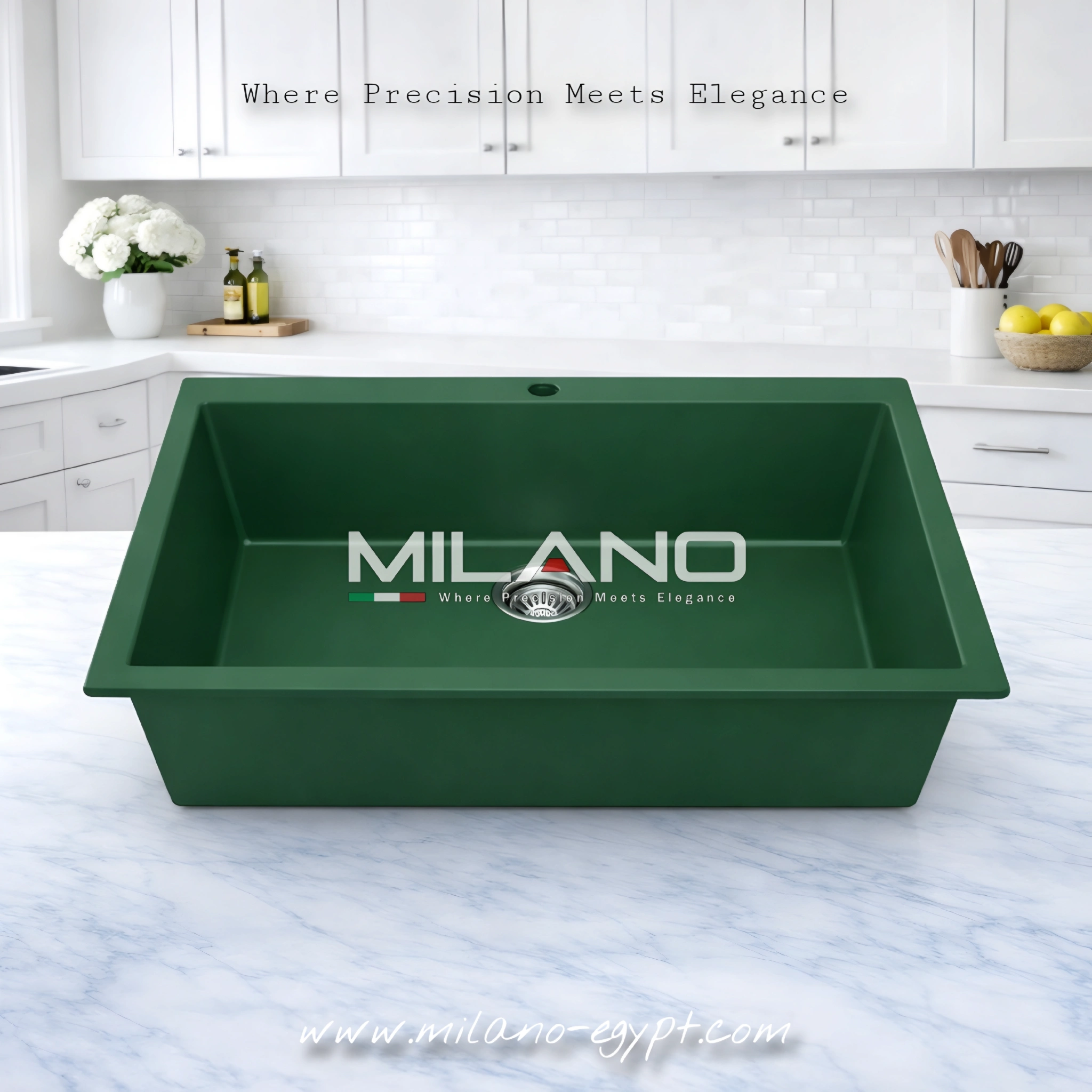 أشتري حوض مطبخ جرانيت 85×50 باللون الأسود في ابيض مع عروق رخامية بيضاء مط من ميلانو إيجيبت – تصميم أنيق، مقاوم للحرارة وسهل التنظيف، مثالي للمطابخ الحديثة.